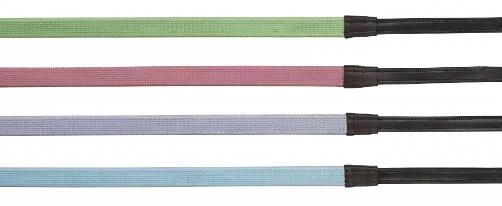 Camelot Strapgoods Colorful Rubber Reins – Brown leather reins with colorful rubber covered grips. Available in trendy colors such Ice Pink and Ice Lavender. Like all Camelot products these reins are quality at an affordable price.