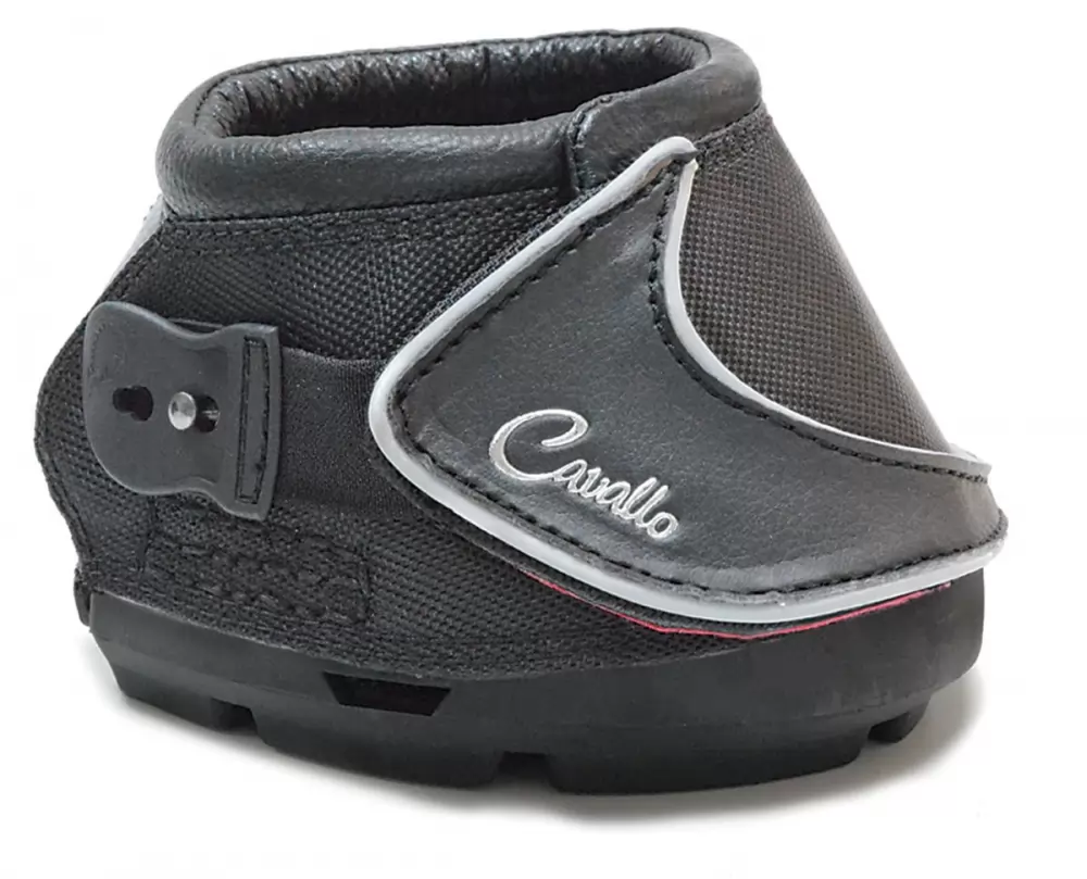 The Cavallo Simple Slim Hoof Boots feature a built-in break over. These boots are designed with a surefooted low-profile sole. In addition the unique tread pattern supports the frogwhile the innovative sole design provides a natural heel (skid) brake. Also the integrated high density inner rim supports the load-bearing hoof wall. The sole width is 1/4 (5mm) narrower than the sole length. Sold in pairs.