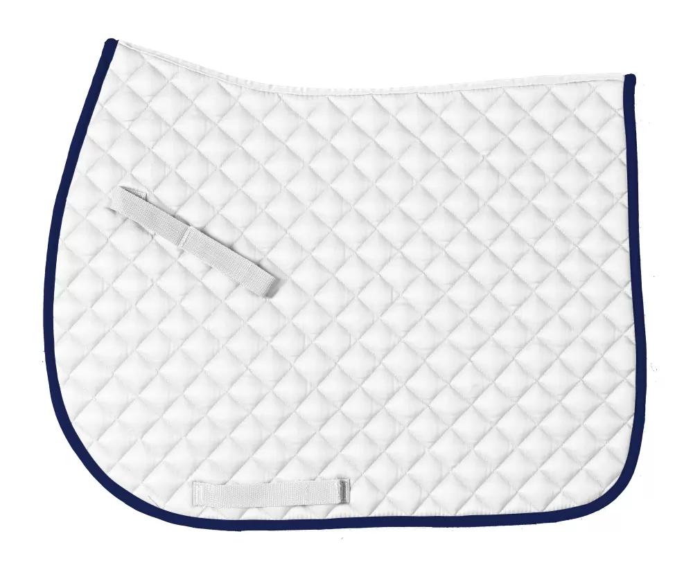 This all purpose saddle pad has a cotton shell coordinating trim 15 mm foam fill and 1 1/2″ diamond quilting. Available in a range of attractive colors with trim.
