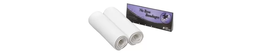 Centaur No Bow Bandages – Pair. These white wraps are made of a soft absorbent fleece fabric with spongy inner.