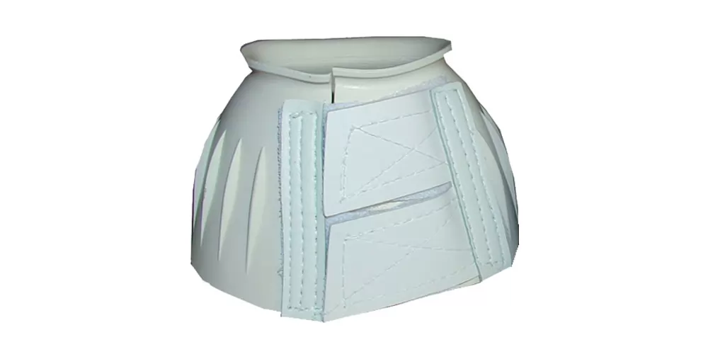 The Double Closure Ribbed Bell Boot with two layers of really stick, hook and loop closures. No tedious stretching over dirty hooves. Colors: Black, White, Brown Sizes: Small, Medium, Large, Extra-Large