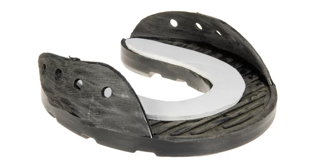 A wide-webbed shoe that offers maximum support across the sole. The internal metal spine allows the shoe to be adjusted to many hoof shapes and creates additional structural integrity. Sold in pairs.
