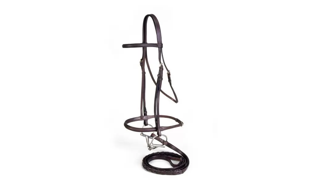 Classic styled raised browband and caveson enhances even the finest show horse’s head. Rich havana brown quality bridle leather with laced reins.