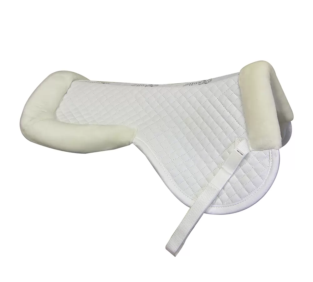 A quality made half pad for the larger horse. This half pad has an all cotton quilted top. This pad features a rolled edge wither and cantle using Pinnacle fleece to provide a secure fit. The Pinnacle trim is removed under saddle flap