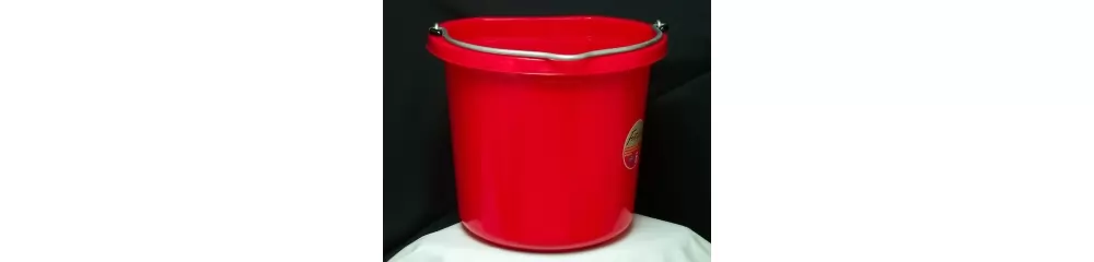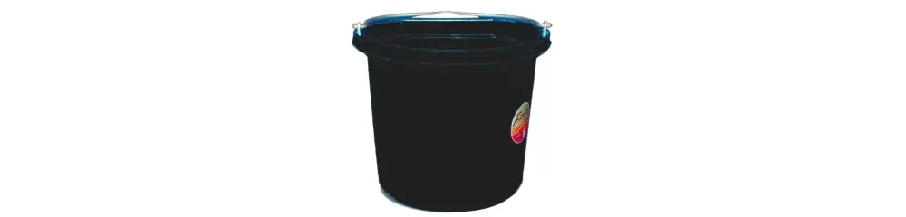The 24 Qt Flat Back Bucket Feeder is made with a Fortalloy Rubber-Modified Polymer. Product is blue in color.