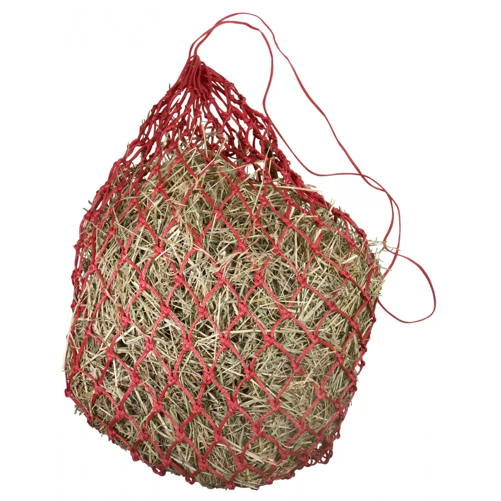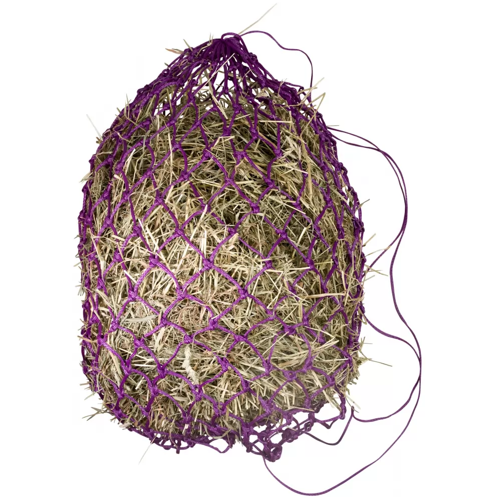 Slow feed hay net encourages slower consumption of hay and allows for less waste. Made of the strongest Challenger poly hay cord for longest wear.