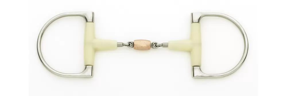 Bits made of copper can have a very positive effect by promoting relaxation and softening. Further designed to encourage bit acceptance is the combination of Apple scented space age polymer mouthpiece and a pure copper center roller.
