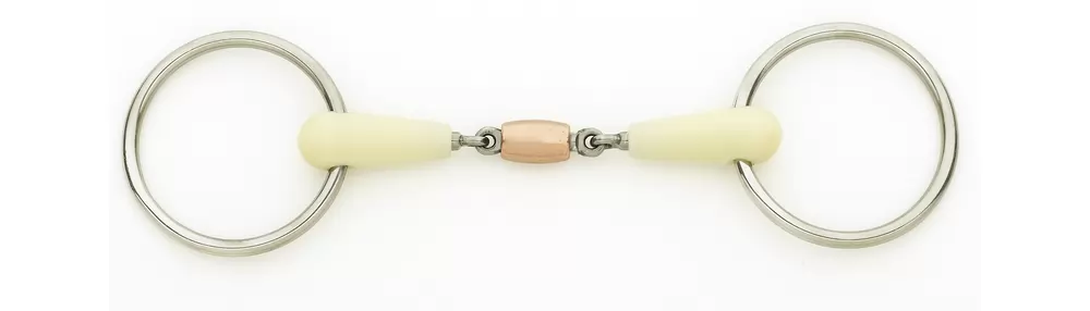 Bits made of copper can have a very positive effect by promoting relaxation and softening. Further designed to encourage bit acceptance is the combination of Apple scented space age polymer mouthpiece and a pure copper center roller.