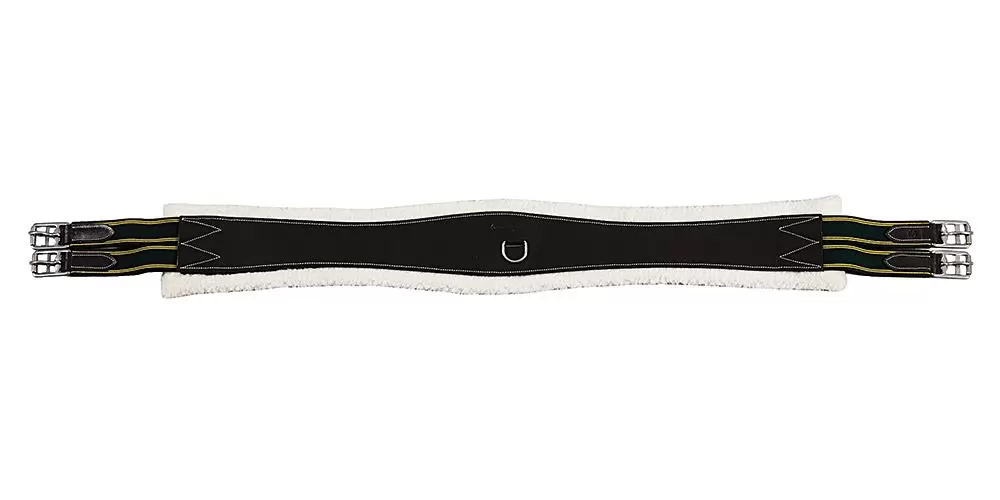 The Henri de Rivel Oakbark Contoured Leather Girth is crafted with supple imported leather based on your horses anatomy and comfort. Its contoured design allows for freedom of movement at your horses elbow and features attractive stitching triple elastic at both ends along with stainless steel roller buckles.
