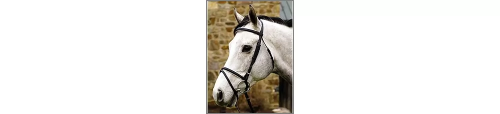Henri de Rivel Collection Dressage Bridle with Web Reins is an elegant Dressage bridle which is made using hand selected European leathers expertly crafted and includes a raised padded nose and brow band. Web reins. Stainless steel hardware.