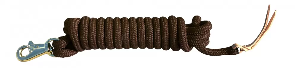 This 5/8 nylon training line features a removable, heavy-duty brass plated swivel bull snap that prevents the rope from twisting and a leather popper. This premium lead is weighted nylon, so you’ll experience more control with this higher quality lead.
