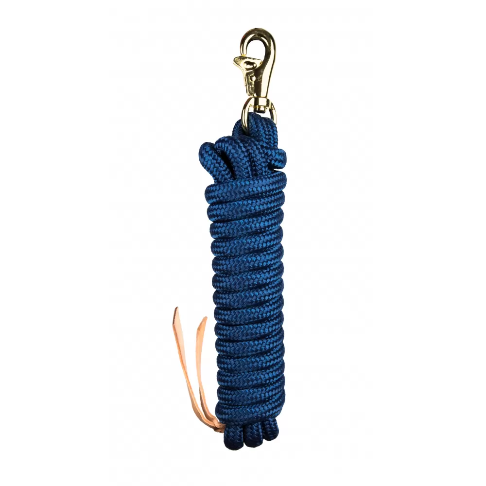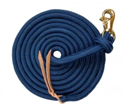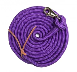 This 5/8 nylon training line features a removable, heavy-duty brass plated swivel bull snap that prevents the rope from twisting and a leather popper. This premium lead is weighted nylon, so you’ll experience more control with this higher quality lead.