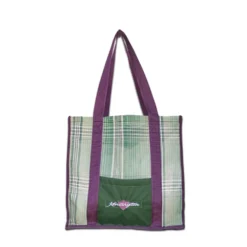 The Kensington Signature Large Tote Bag is ideal for all of your equestrian and personal needs. It allows you to carry all your tack supplies and more. Constructed of durable US made Textilene, this bag will take a beating and still makes a fashion statement with our designer plaid. The roomy interior compartment measures 16L X 17W X 12H and includes elastic straps to secure containers in an upright position. The 2 exterior pockets are perfect for holding everything from hoof picks to combs. One side pocket and double nylon handles.