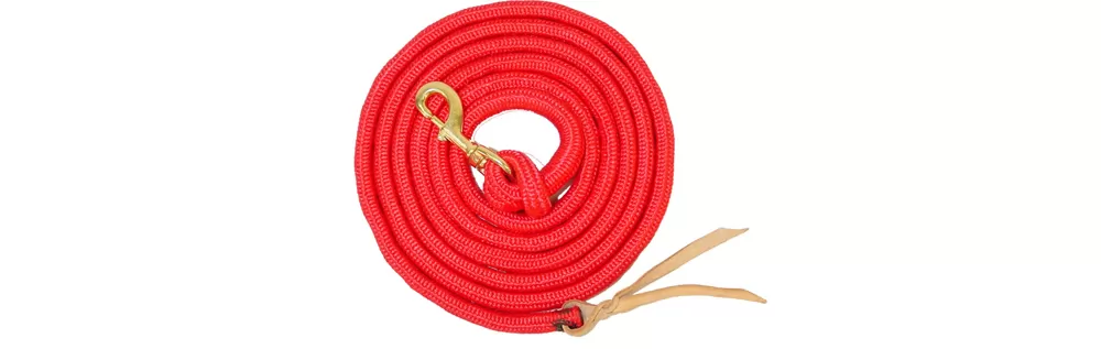 Cowboy polypropylene lead, malleable iron brass plated 7/8″ bolt snap without clamp, leather tie,