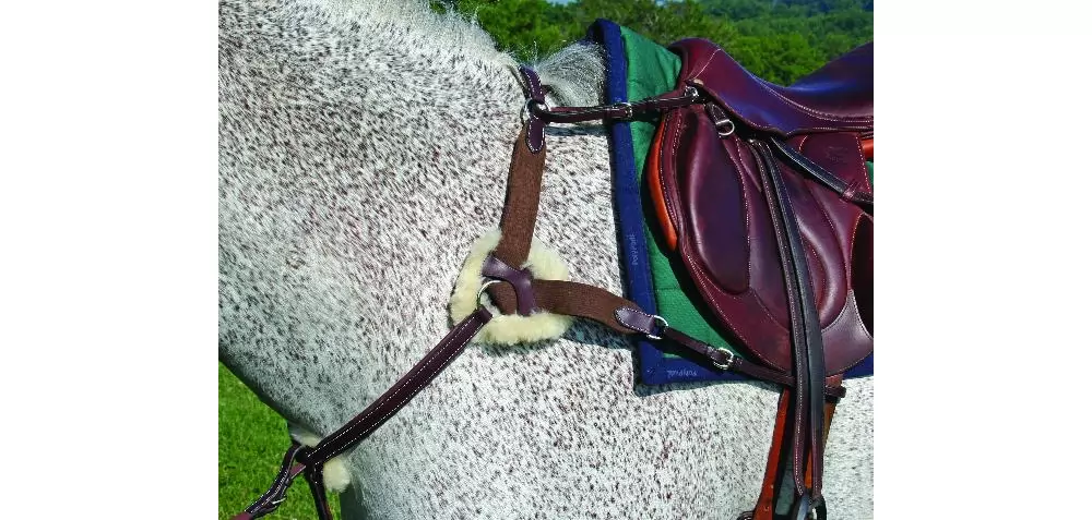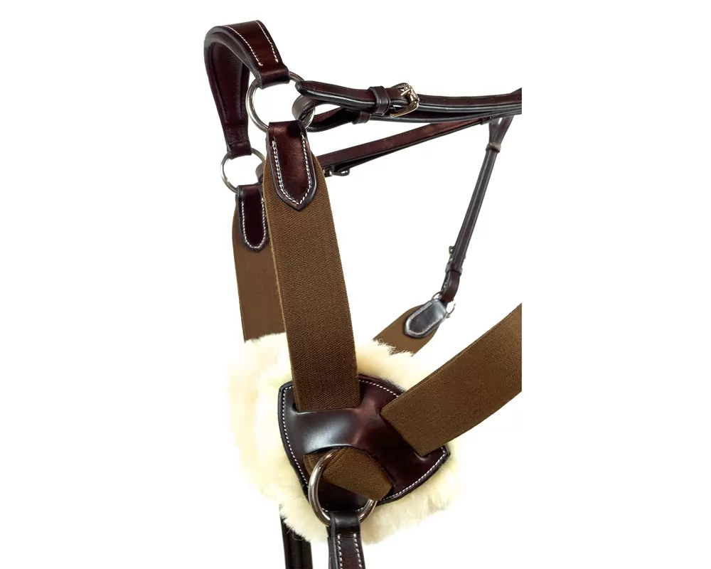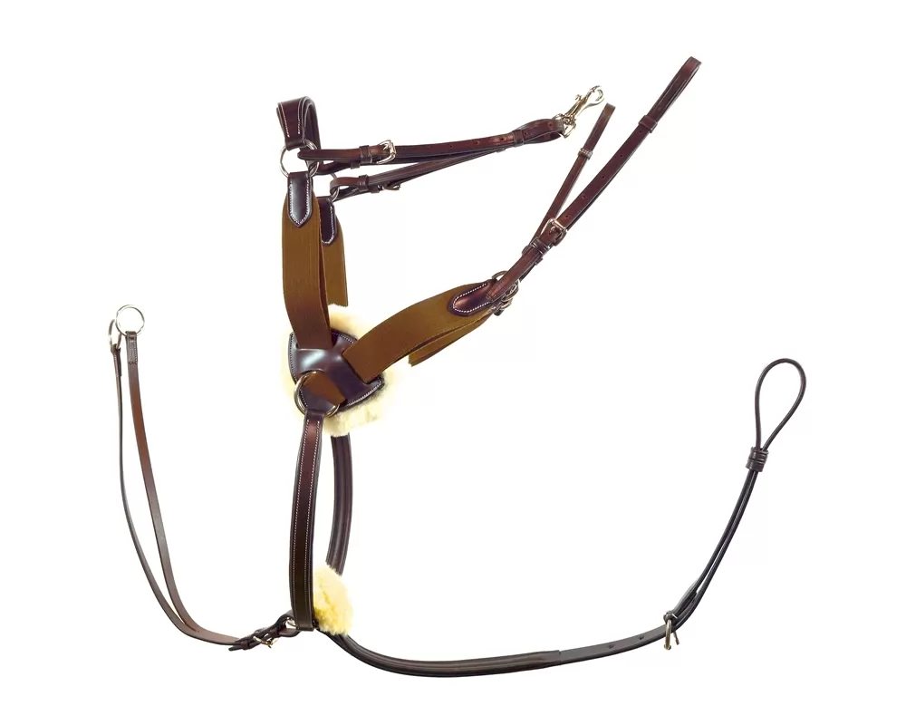Nunn Finer Five Way Breastplate. Five contact points provide a fantastic and secure fit. Beautifully designed, easy to adjust and made to last. Made of American leather. Matching running attachment included.olors: Havana with zinc fittings