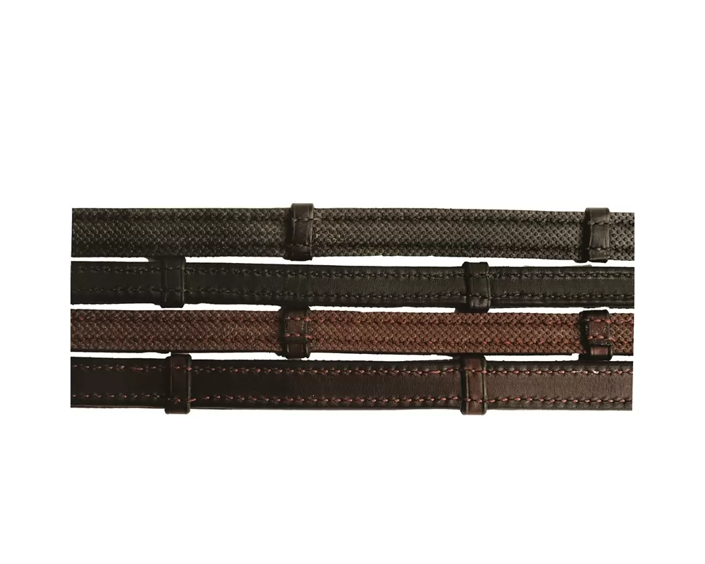 These reins were originally a custom order that never got picked up, so company owner John Nunn started using them and loved them so much that all of his personal bridles now feature these reins.