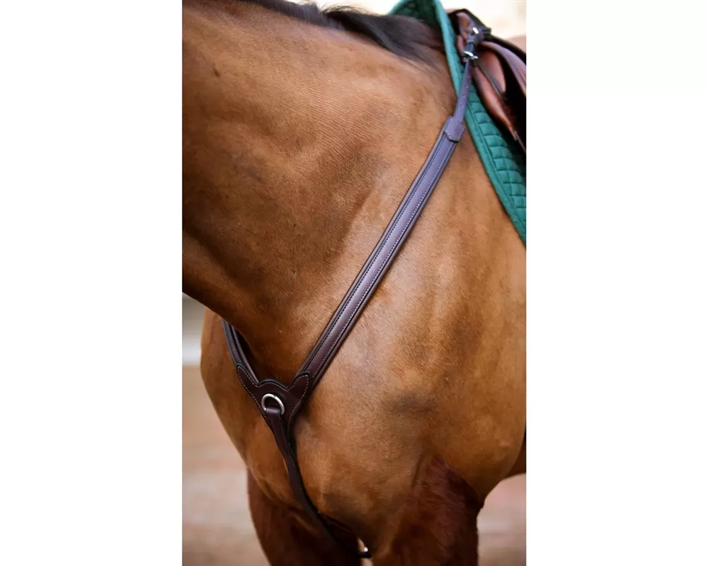 The Nunn Finer Upperville Breastplate combines beauty quality and elegance. This exquisite breastplate is crafted in the USA of top grade vegetable tanned bridle leather and shaped to fit. In addition it is softly padded along the neck and chest.