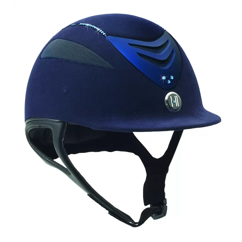 The One K Defender Suede Helmet with Swarovski Stones features the added sparkle of genuine Swarovski crystals to the popular One K Defender helmet.
