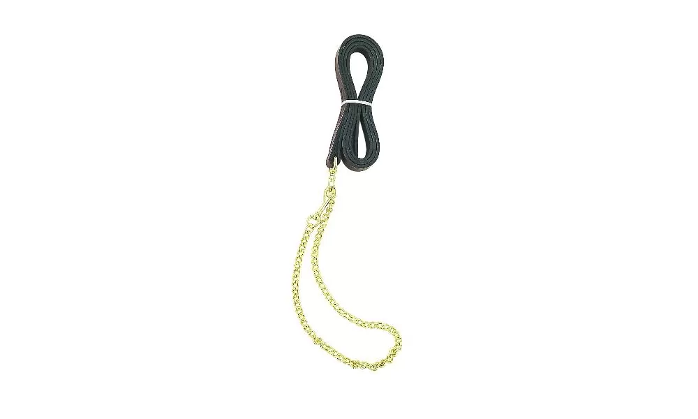 Perris Leather Collection Leather Lead with Fine 30in Chain. This high quality leather lead is 3/4 inch x 6 ft. with a fine 30 in. brass plate chain. Great in your lead line or showmanship class.
