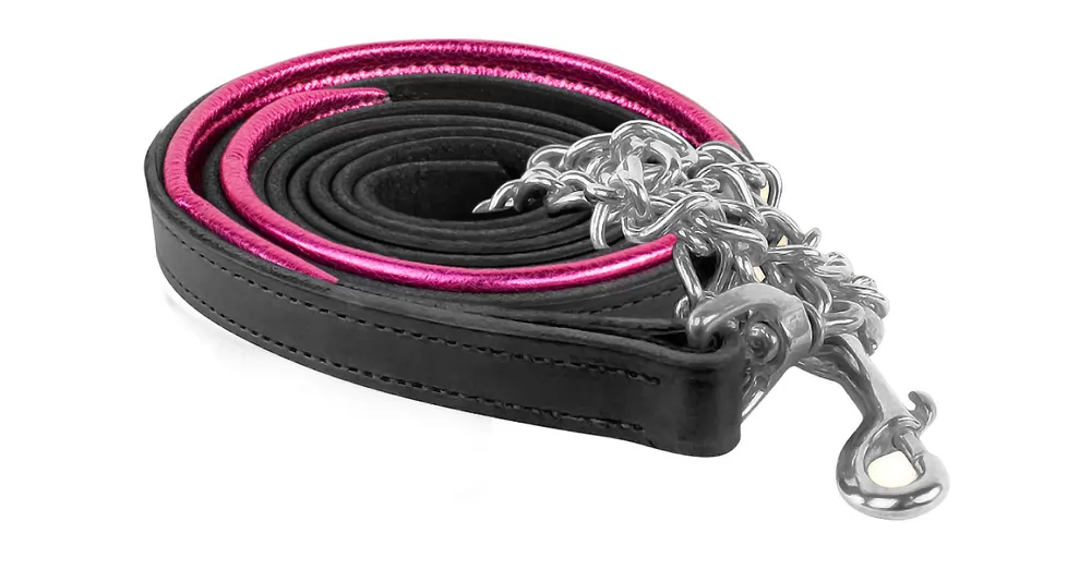 This Amish made soft metallic padded leather 1″ lead has just enough glitz Comes in a variety of colors to matchthe Metallic Padded Leather Halters.