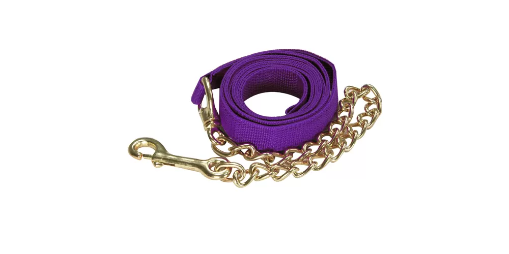 The Poly Web 6′ Lead has a 20″ brass plate chain. Colors Black, Blue, Purple or Red.