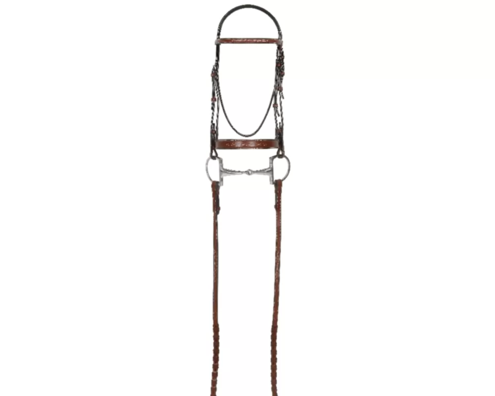 Created with Pessoas competition-proven designs and then meticulously crafted from hand-finished American leather with the attention to detail that distinguishes top horse show equipment. The Rodrigo Fancy Stitched Wide Noseband Show Bridle comes with matching stitched laced reins.