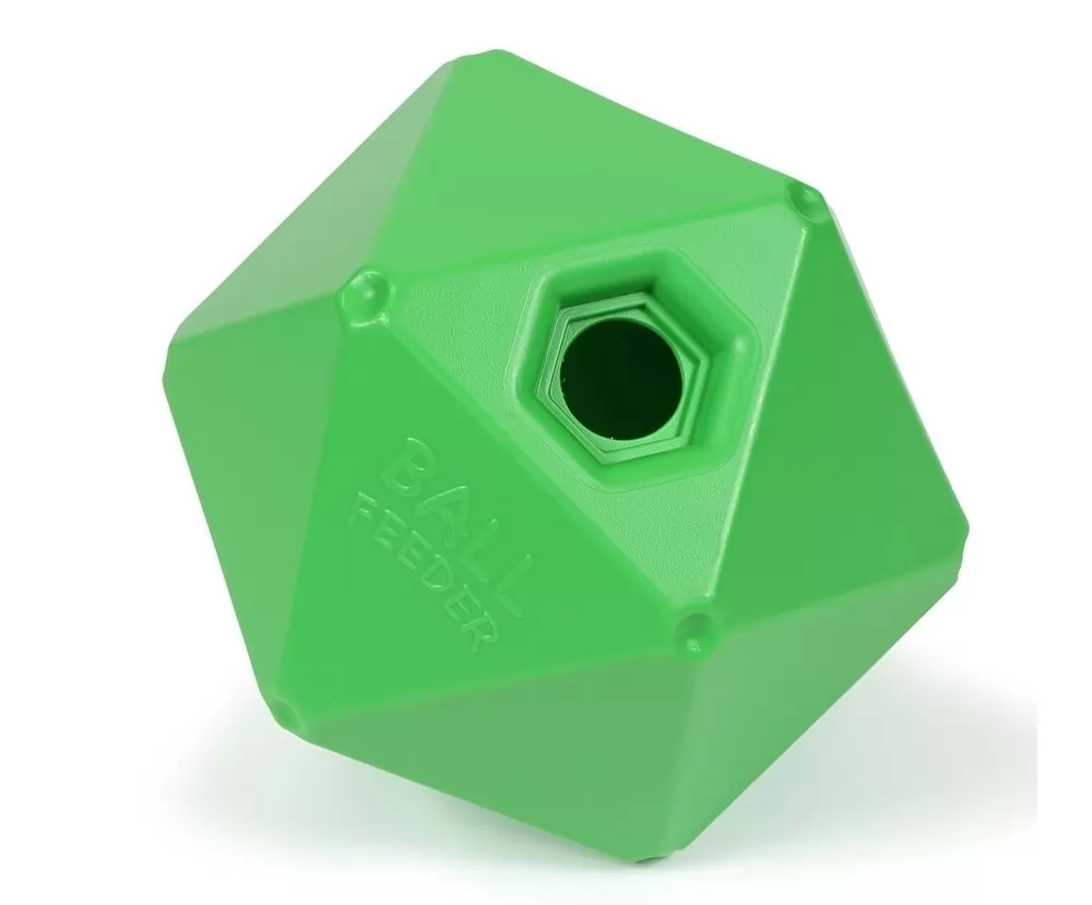 The Shires Equestrian® Ball Feeder will help to ease stable boredom or to engage your horse in his paddock with this colorful ball. Just fill it with treats or grain and let your horse play. He will be rewarded with tasty treats as he pushes his ball around.