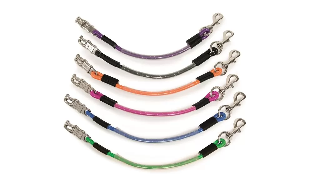 The Shires Heavy Duty Bungee Trailer Tie is a calming shock absorbing bungee line that quickly tethers horse in the barn or trailer. The bungee lines offers gentle resistance if the horse pulls which reduces stress. Featuring a swivel trigger clip at one end and panic release at the other end. the bungee is encased in clear plastic tubing to reduce wear and tear.