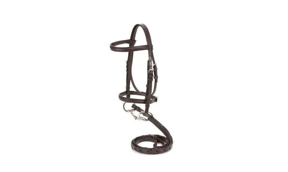 Traditional style raised browband and caveson enhances even the finest show horse’s head. Quality standard leather with laced reins. Bit not included.