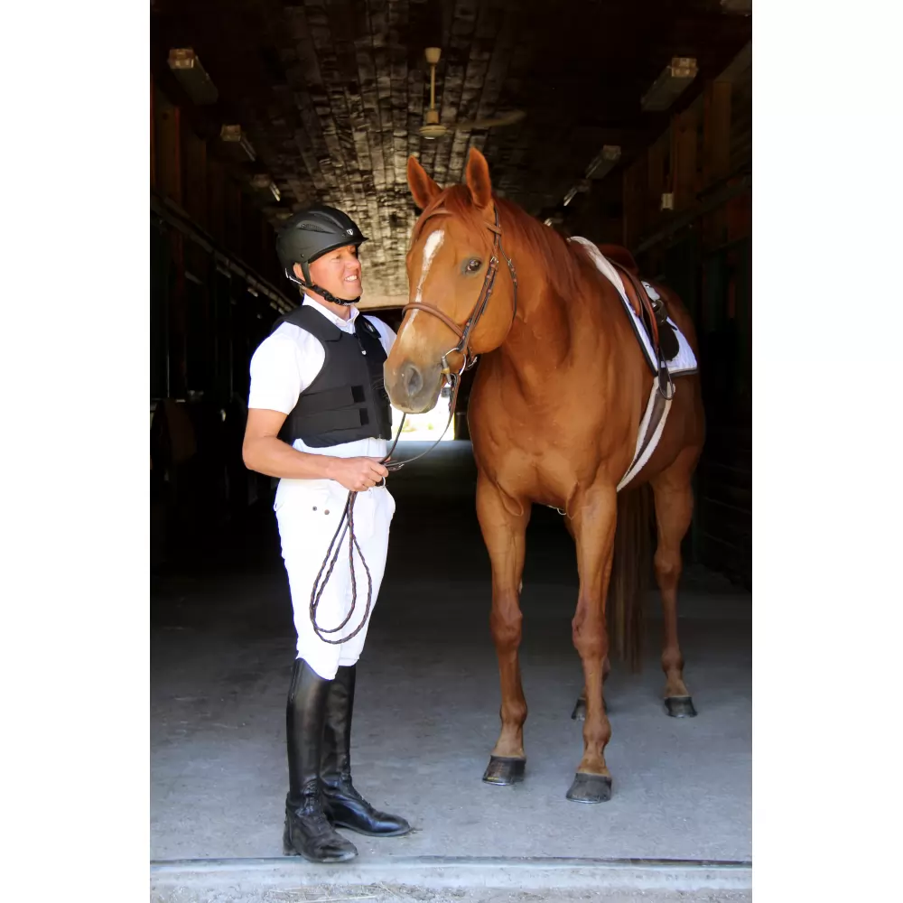 Fit/Mobility: Short-backed style allows for both superior protection and exceptional comfort. Includes a zipper front with adjustable waist and shoulder straps, ensuring a custom fit