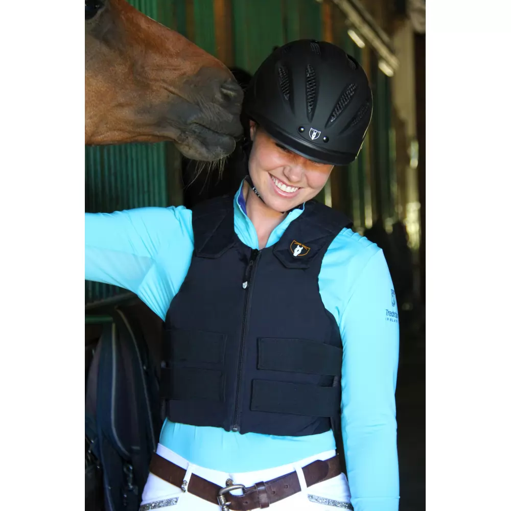 Fit/Mobility: Short-backed style allows for both superior protection and exceptional comfort. Includes a zipper front with adjustable waist and shoulder straps, ensuring a custom fit