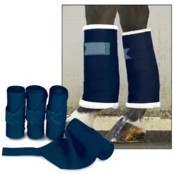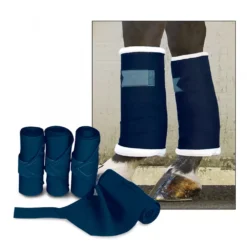 Standing Bandages are great for use with leg wraps. The elasticity is greater in width than length to evenly distribute pressure when wrapping. This gives the bandage a secure fit but minimizes the risk of wrapping too tightly. Easy to use Velcro fasteners keep them in place. Machine wash col, tumble dry low. Free Laundry Bag with each set of 4 Standing Wraps.