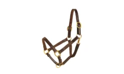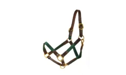 The Tory Leather 1″ Nylon Halter with Leather Tabs provides a perfect combination of bridle leather that gives the halter a good safety factor and a good nylon that provides the color that you want. Together, the leather and nylon make a halter that fits really well and will break if the horse gets caught by the halter. This nylon and leather tab halter has a leather chin strap, double crown buckles and solid brass hardware. Tory Leather makes a wide variety of grooming and stable supplies to meet all of your needs. Tory leather products are made in the USA.