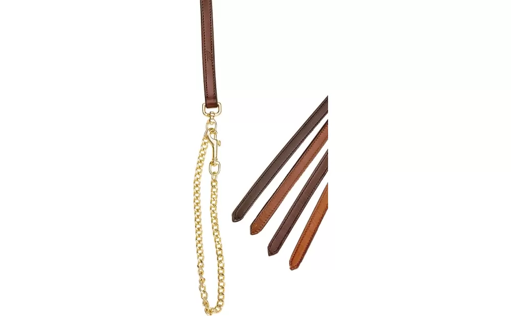 The Tory Leather 3/4″ Double & Stitched Lead with Brass Plated Chain is a single ply lead that comes with a 24″ brass plated chain. This lead is made of quality English bridle leather and matches Tory Leather’s Western show halters. The leather straps are 6 1/2′ – 7′ long.