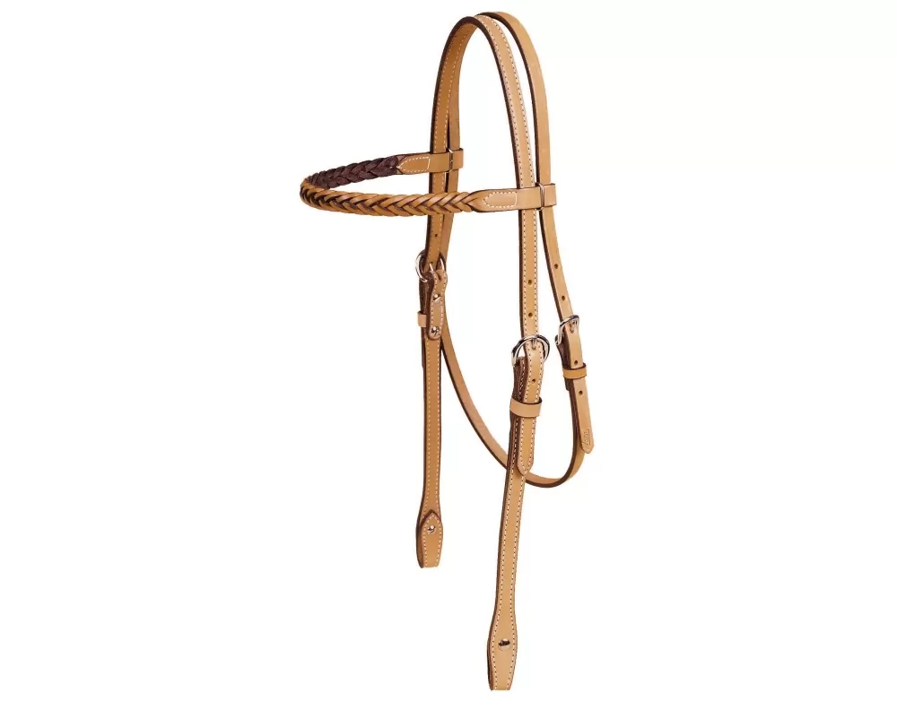 From the original Tory Leather – MADE IN USA. This headstall has braided leather straps and buckles attached with Chicago screws to add silver if desired.