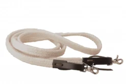 1 X 8 Soft Braided Cotton Continuous Rein With Leather Water Strap Ends And Scissor Snaps To Attach To The Bit. The Water Straps Can Be Connected Directly.To The Bit If Desired