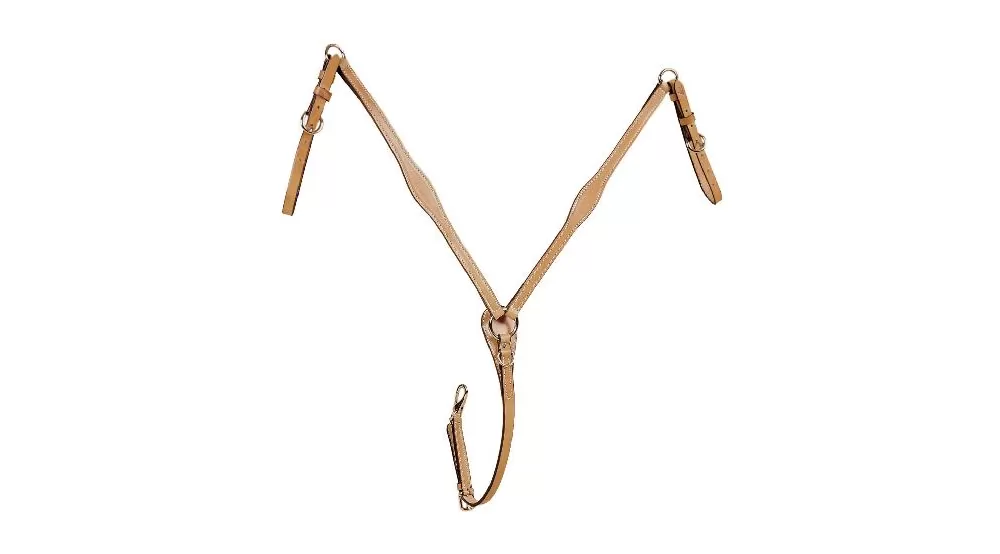 From the original Tory Leather – MADE IN USA. This bridle leather flared center breast strap has buckles on the connector straps that are attached with Chicago screws so that they can be changed to silver.