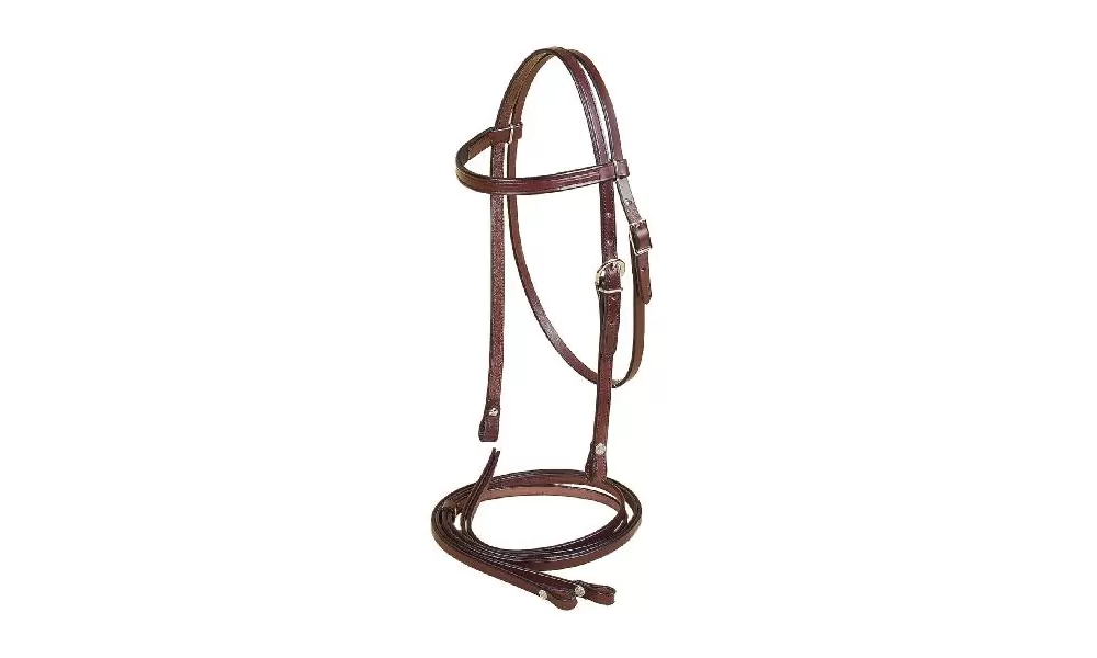 From the original Tory Leather – MADE IN USA. This filling is composed of a 5/8″ sliding ear headstall and 1/2″ x 5′ reins. The headstall is a full double and stitched headstall with double cheek buckles that are attached with Chicago screws so that they can be changed. Chicago screws are also on the bit ends on both the headstall and the reins.