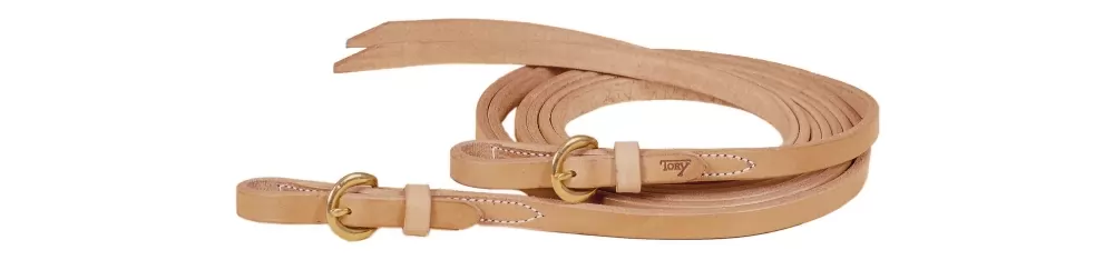 From the original Tory Leather – MADE IN USA. These single ply reins have solid brass buckle bit ends.