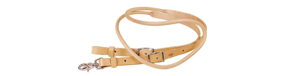 From the original Tory Leather – MADE IN USA. These single ply reins have a rolled hand hold and nickel snaps.