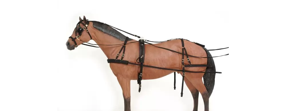 Fully adjustable nylon breeching style harness comes complete with bridle and breast collar. Worry free durability and strength are just a few advantages of this nylon harness.