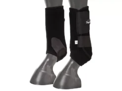 Tough-1 extreme vented sport boots provide 360 degrees of maximum protection. These boots feature a suspensory sling that provides flexible fetlock and tendon support without restricting movement or inhibiting performance. Their vented inner and outer layers provide ultimate comfort and key placed darts allow the boot to conform to the leg to keep dirt out. Complete with super tough “Quick Grip” closures, these boots provide a secure fit every ride.