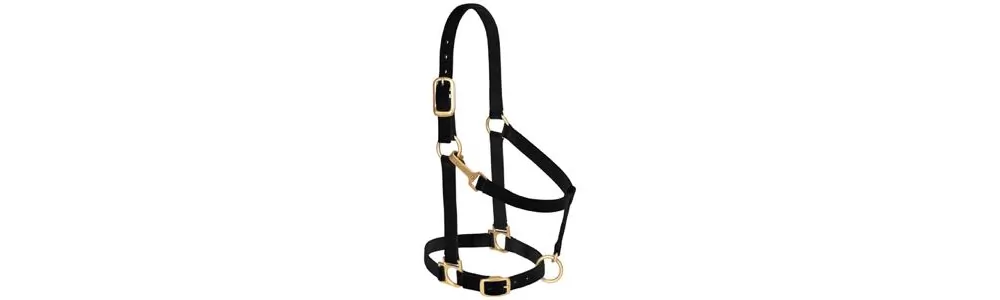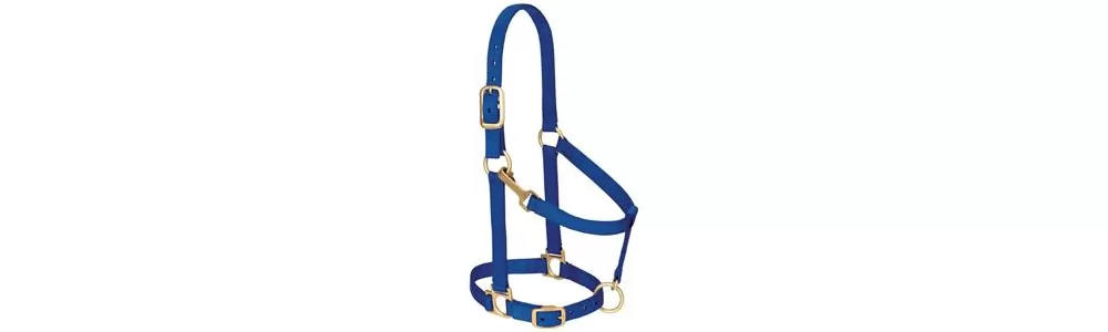 The Elite Adjustable Halter WithSnap Throatmeasures 1″and has aflatthroat design. It features a brass plated hardware (including sewn-in throat snap)