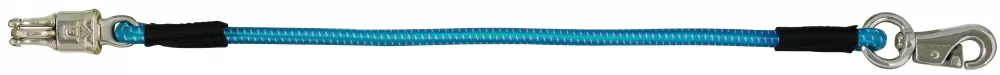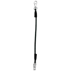 This 23″ long trailer tie is constructed from 1/2″ bungee cord for extra give. Features a quick-release panic snap on one end and a bull snap on the other end. Durable nickel plated hardware.