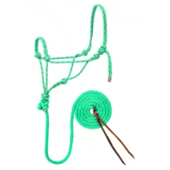 A great halter at a great price! This halter is made from a continuous piece of 3/8″ poly rope with a hand-knotted construction and a double noseband and crown strap. The hollow braid spun poly lead measures 1/2″ x 10′.