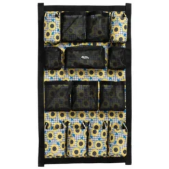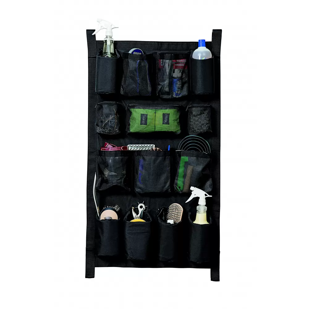 Grooming essentials will be neat and organized with the convenient Weaver Trailer Grooming Bag. Hangs easily and offers a 600D polyester material with a variety of open and zippered mesh pockets and padded compartments. his design is perfect for storing brushes, combs, bottles, cans and more. Great for use in barns, stalls and trailers to keep supplies close at hand. You’ll love all the storage options: three zippered mesh pockets for security; five open mesh compartments for easy access; six padded compartments. Straps feature hook and loop closures for easy hanging. Measures 23″ W x 39″ H