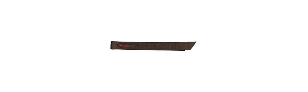TheDoubled and StitchedOff Billet features a three hole tie and burgundy latigo leather ties. Each measures 39″ long and 1 3/4″ wide.